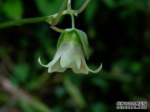 树枝上的一朵孤花;在子房中部五个长袍上方的杯子。花冠广泛地像营地,黄绿色,尿酸是青春期的,顶部是5片叶子。雄蕊5,花丝,亚近圆形。